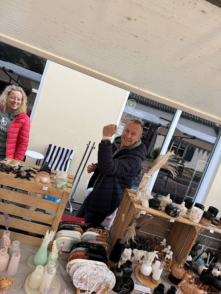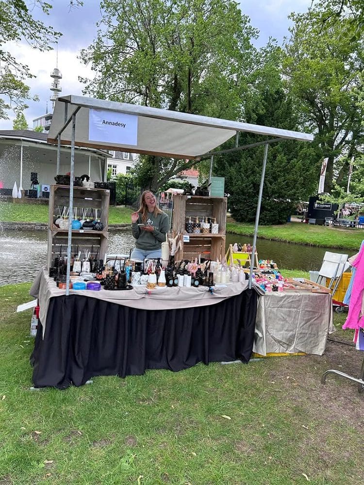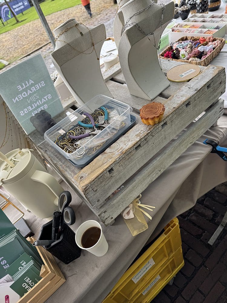 Twee dagen ervoor kreeg Leandra te horen dat er nog op woensdagavond een kraampje vrij was en droeg ons aan. Dit kwam er dus even last minute tussen. Het was een klein kraampje dus namen we alleen de epoxy mee en kleding. Maar dat was prima.