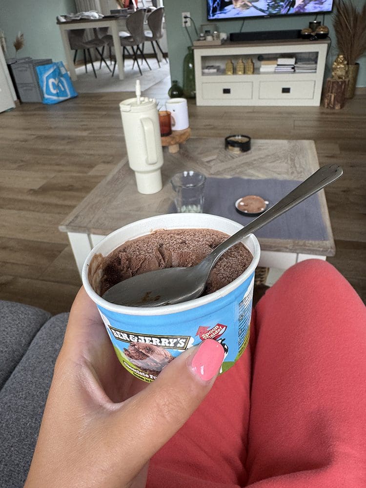 Thijs was later thuis. Ik nam een lekker toetje na het eten.