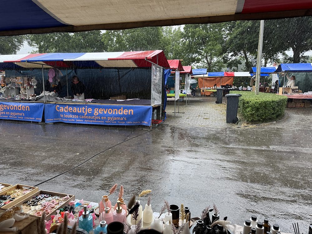 Na 16:00 mochten we gelukkig al opruimen. Veel kraamhouders waren ook al weg. Wij hebben nog even gewacht samen met onze buren totdat de ergste buien weg waren. Hebben in het laatste half uurtje nog best wat verkocht, haha.