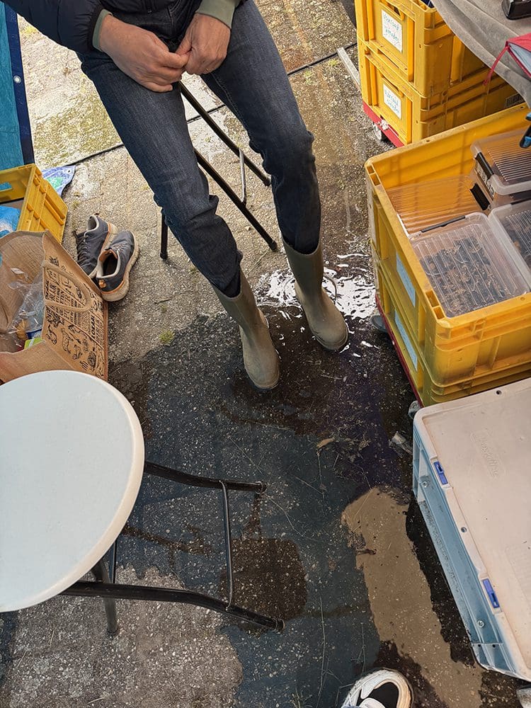 Tja en verder was het een beetje wachten op af en toe een klant. We hebben gelukkig wel wat verkocht ondanks het slechte weer.