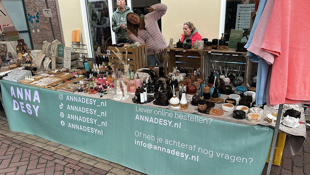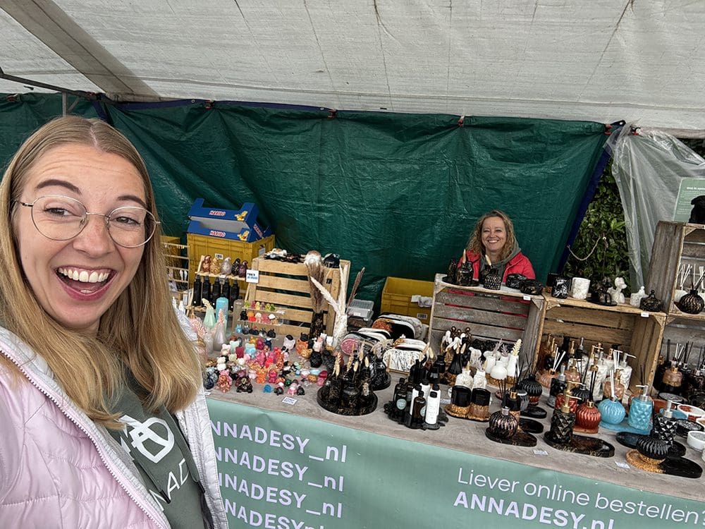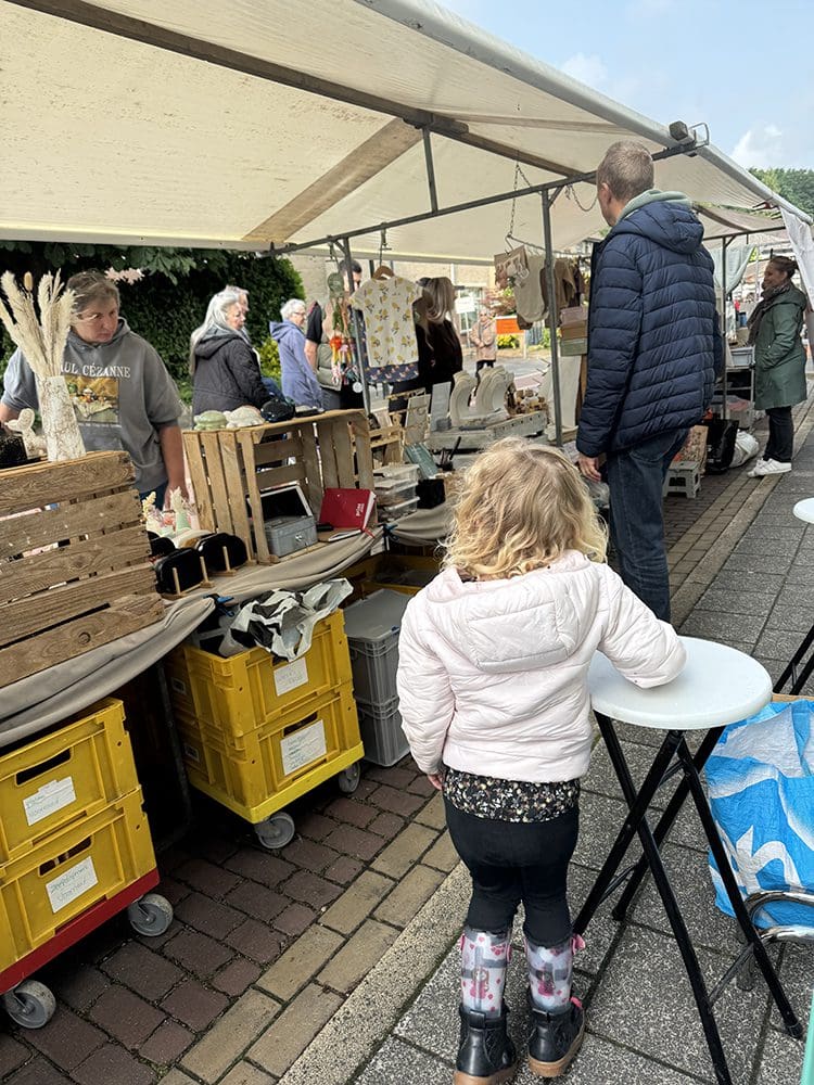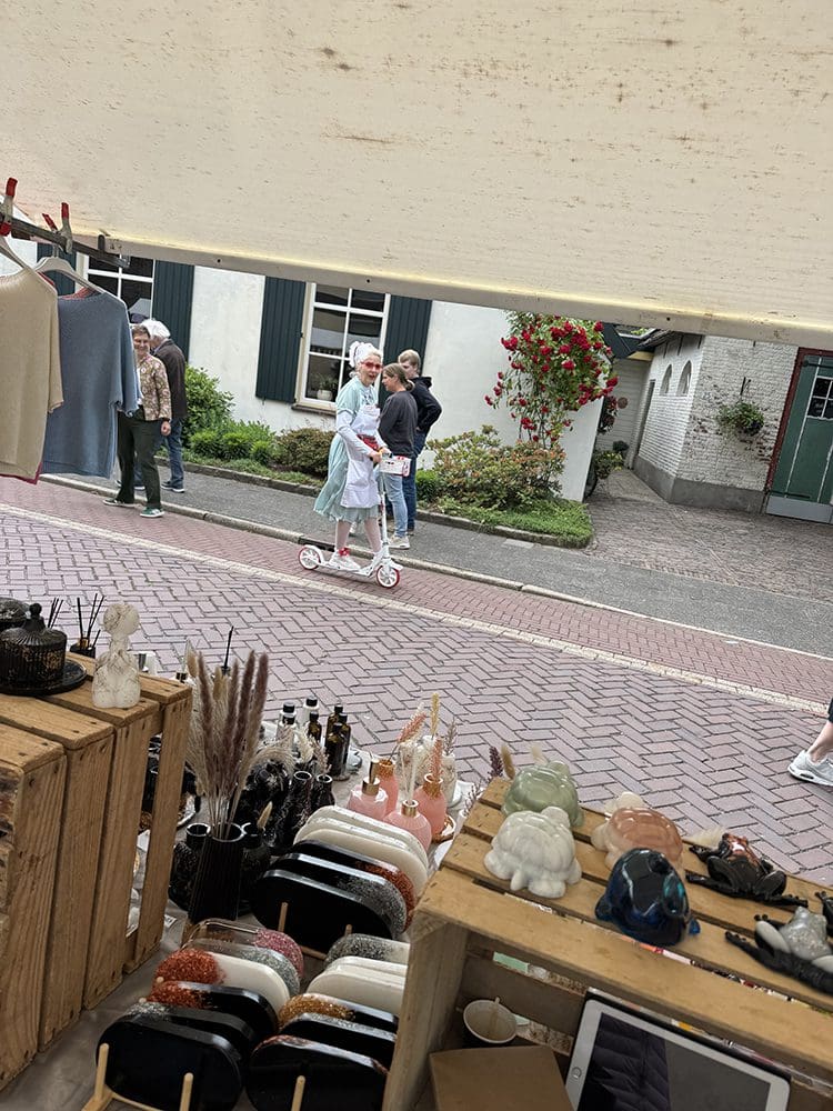 Mila was ook mee en kwam af en toe helpen. Zo lief. Het was in de ochtend en begin van de middag lekker druk. Wel heel veel kijkers helaas. Weinig kopers.