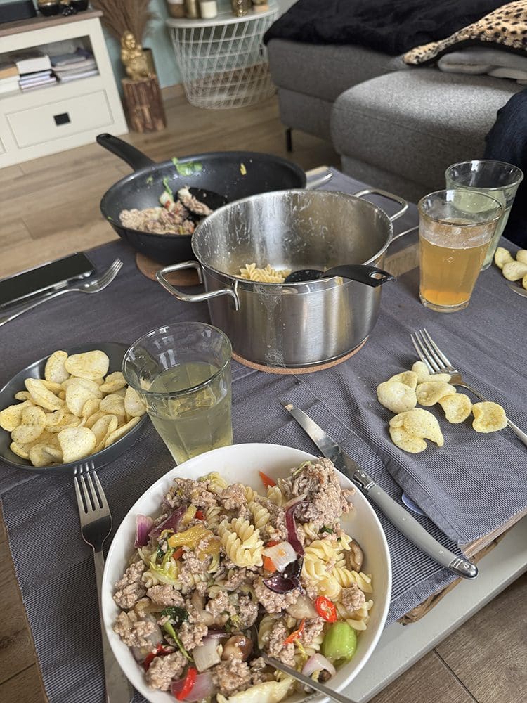 Mijn ouders zijn meegegaan naar ons en daar heeft Thijs voor ons gekookt.
