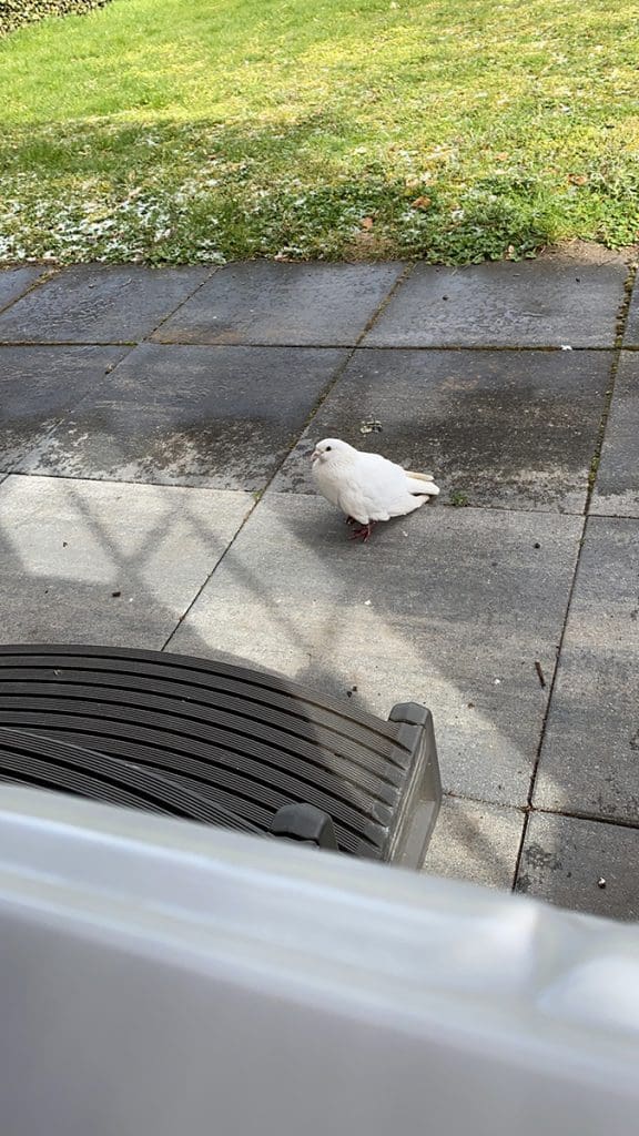 Maar had er ook gezellig gezelschap van de huisduif.