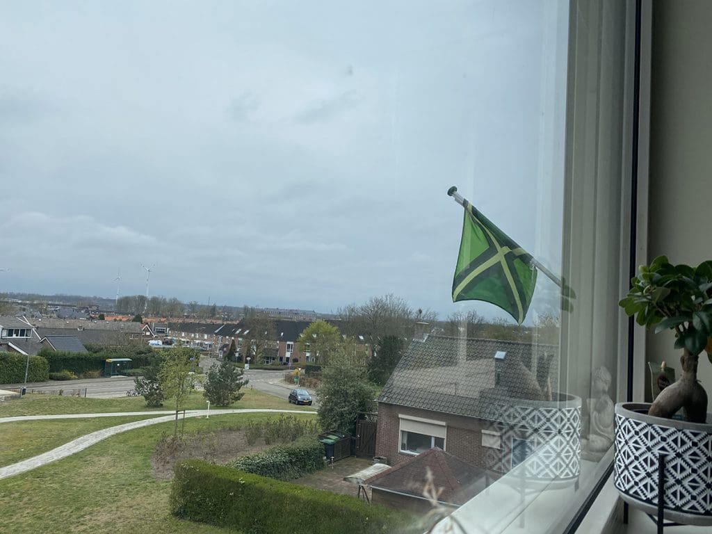 Zaterdag (10 april). Kijk eens wat een vrolijke vlag er hangt. Haha, hier komt nog een artikel van online. Die dag was ik wat moe en zat ik wat achter de laptop.