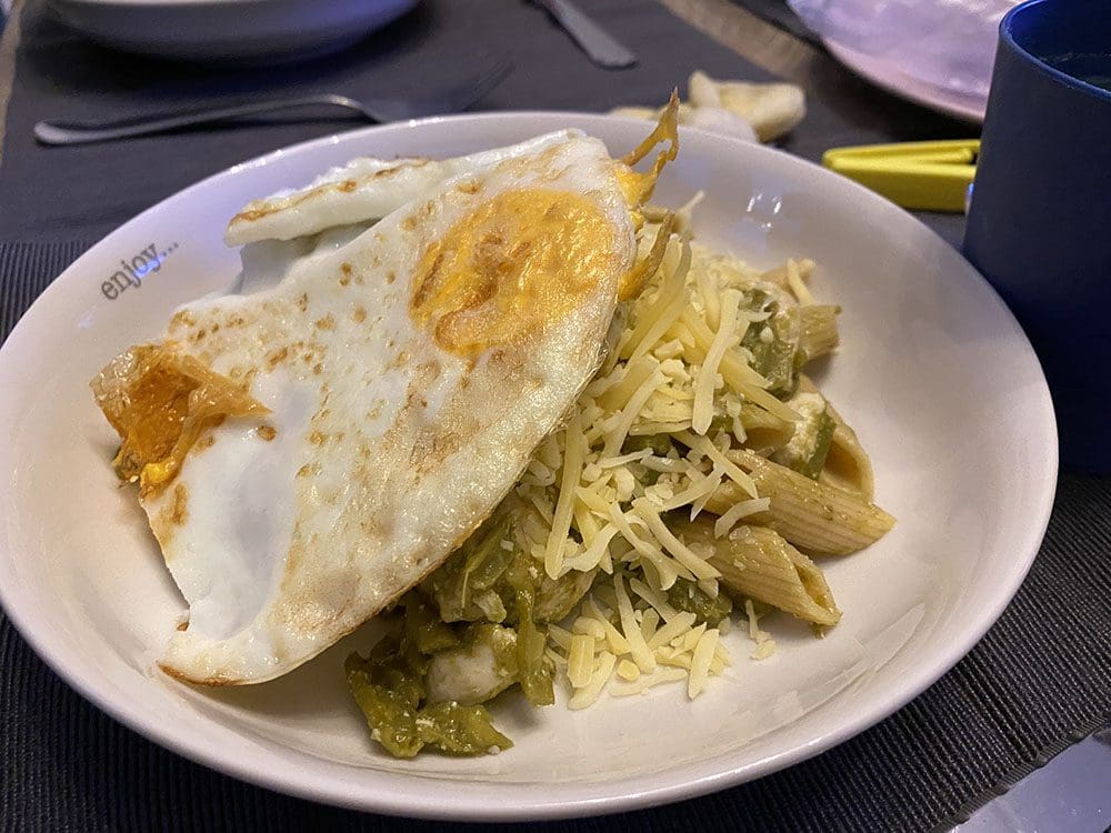 Thijs heeft een heerlijke kip Pesto gemaakt. Jammie.