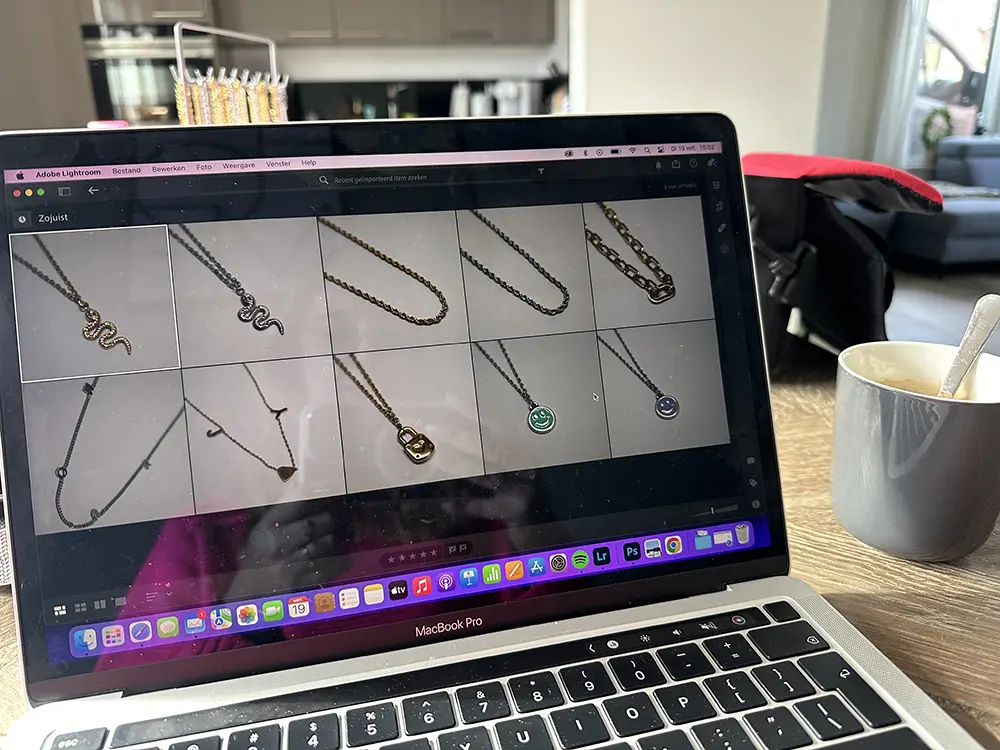 Ik heb daarna van de sieraden nog productfoto’s gemaakt. Dit was even weer uitzoeken hoe ook alweer.
