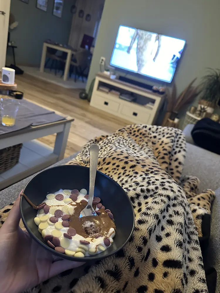 Thijs had een lekker chocolade toetje gemaakt, haha. Beetje veel maar wel super lekker.