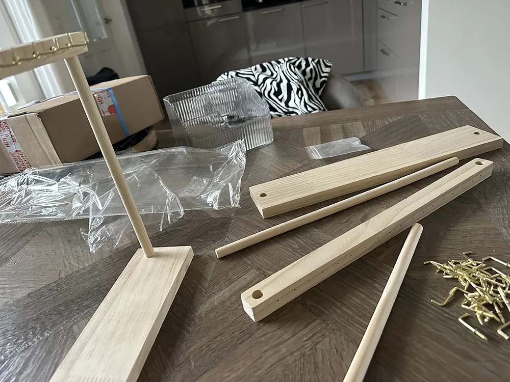 Gelijk heb ik de sieradenhouders in elkaar gezet. Alle schroefjes moest ik er zelf indraaien.