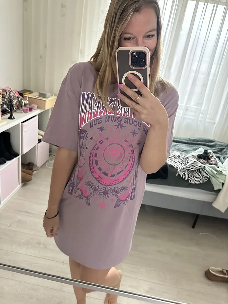 En de kleding past! Deze t-shirt dress vind ik echt zo gaaf.