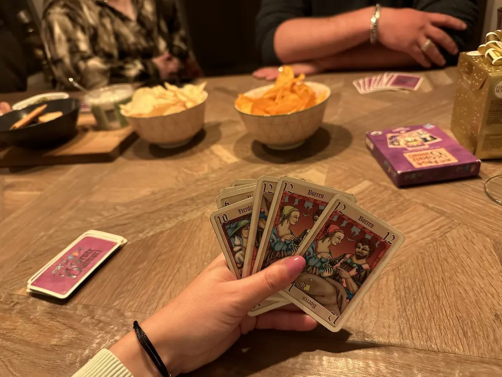 En spelletjes spelen. Tussendoor praten we veel, haha.