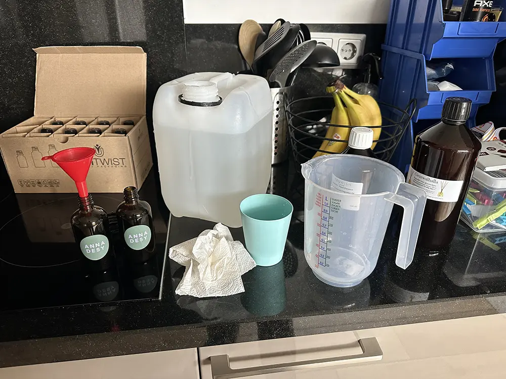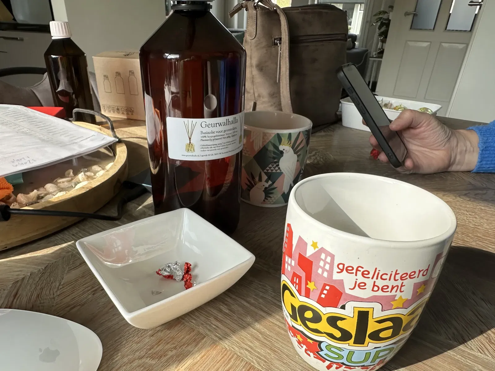 Moeders kwam ook nog even en we hebben nieuwe geurolie gemaakt. We waren alleen een beetje de verhoudingen kwijt, we hebben er hard om kunnen lachen en het is weer goed gekomen.