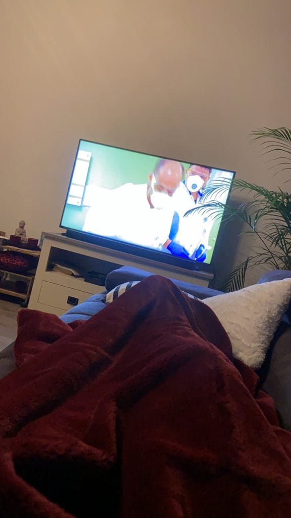 En daarna lag ik lekker met een dekentje op de bank. Ik keek op Videoland naar de serie over het ziekenhuis in Noord-Brabant tijdens het begin van de Corona crisis. Heftig om te zien.