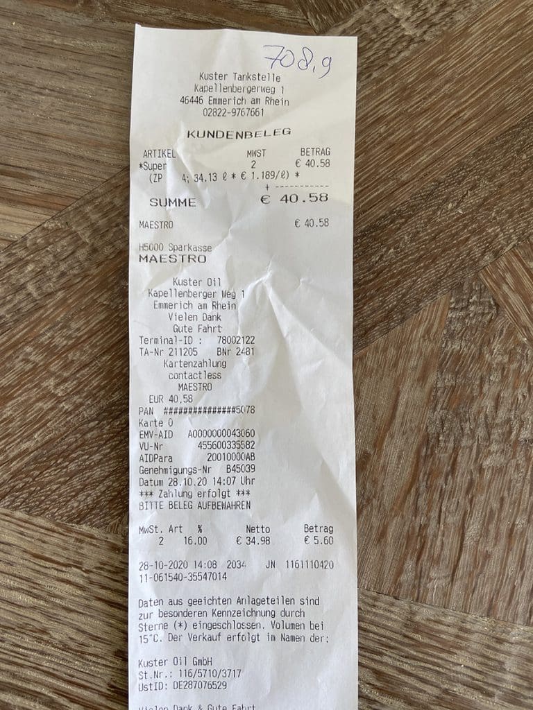 Woensdag (28 oktober). Na het werk reed ik door naar Duitsland om daar te tanken. Scheelt toch weer even.