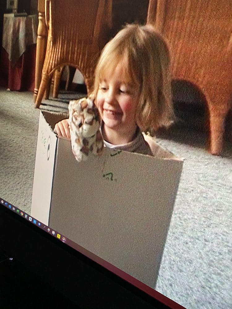 Nadat de actie online is gezet, ging ik naar mijn ouders. Daar was ik op zoek naar oude foto’s van mijn basisschool tijd. We vonden ook andere foto’s en schattige filmpjes van vroeger. Mini Merle, haha.