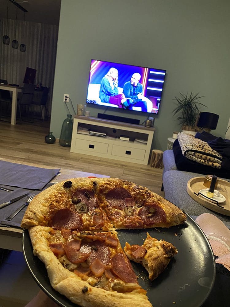 Vrijdagavond is bij ons pizza avond. En we kijken DNA Singers.