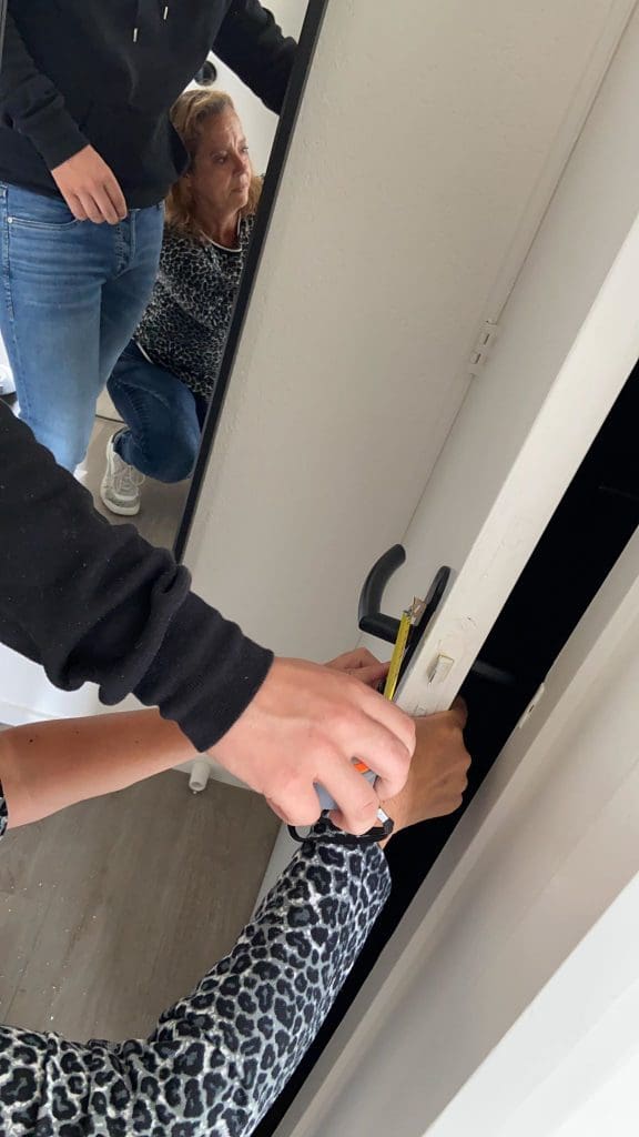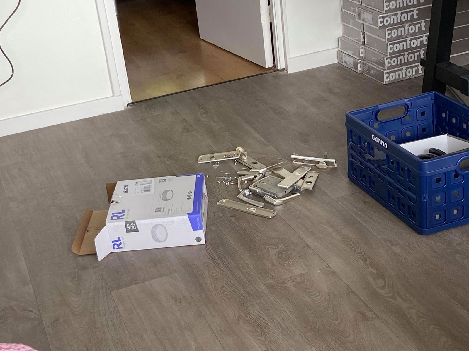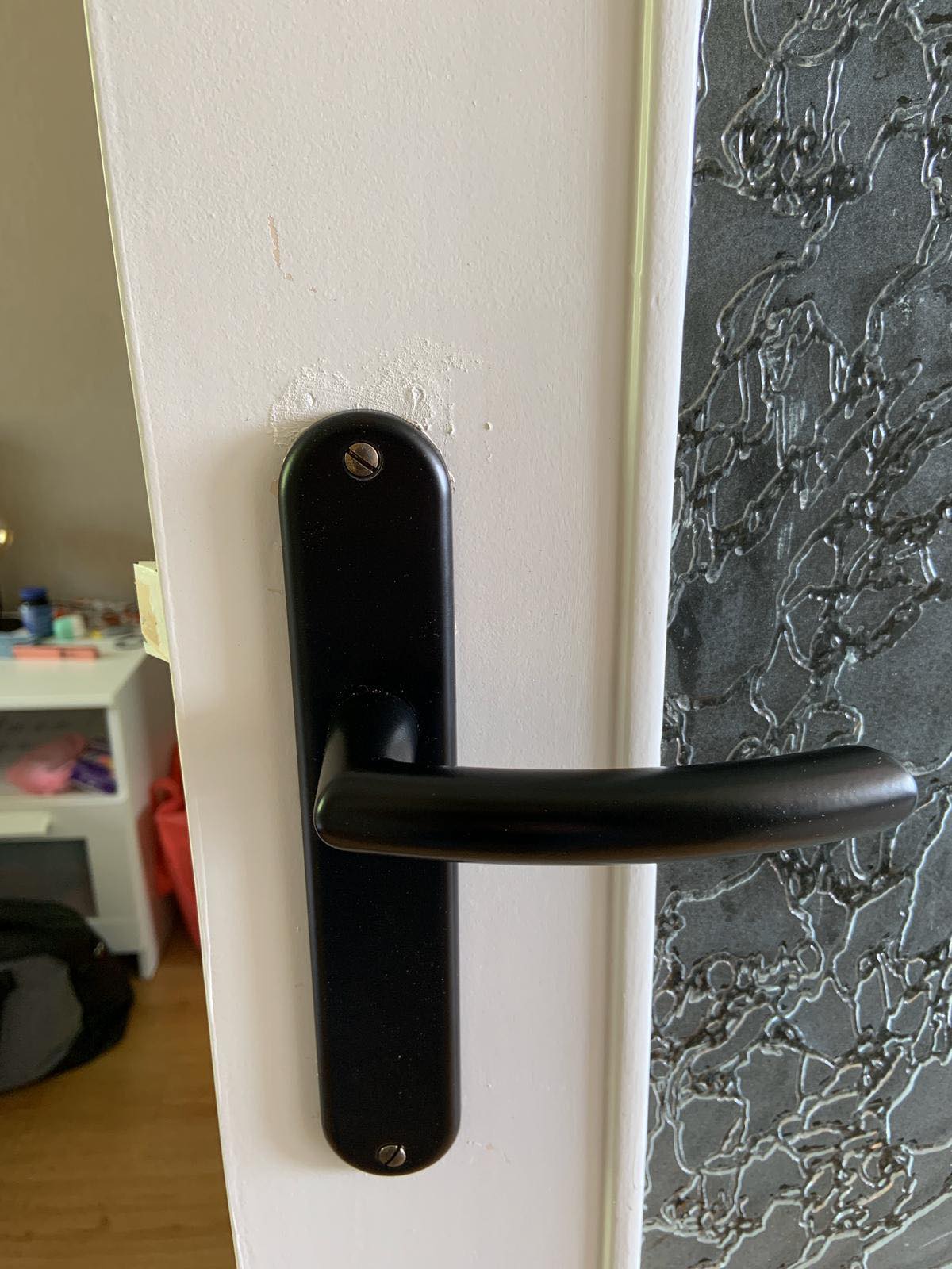 Mijn moeder kwam langs om te kijken naar het schilderwerk en hielp gelijk even met de deurklinken. Conclusie: rot werk en ze zitten scheef. Dit laten we die vriend van ons ook maar even opknappen, haha.