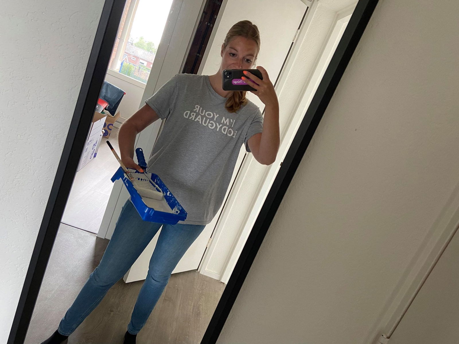 Met een shirt van Thijs aan en een oude broek ging ik er tegen aan, haha. Thijs had in de middag een afspraak.