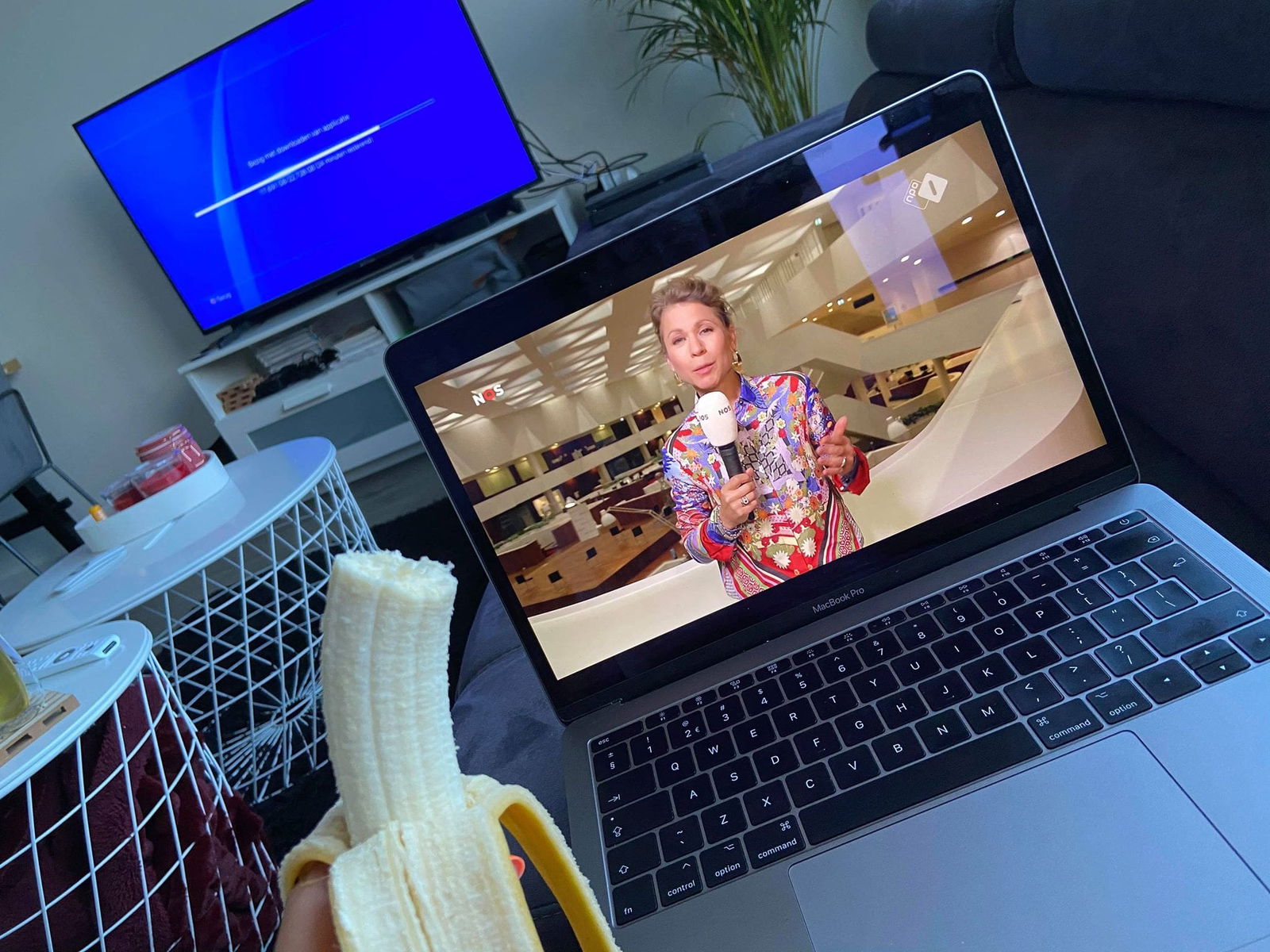 Om 20:00 kijk ik altijd het journaal. Op de tv was de playstation van Thijs een update aan het doen. Die duurde wel heel lang. Ding was lang niet gebruikt en de volgende dag kon hij er pas op spelen, haha.