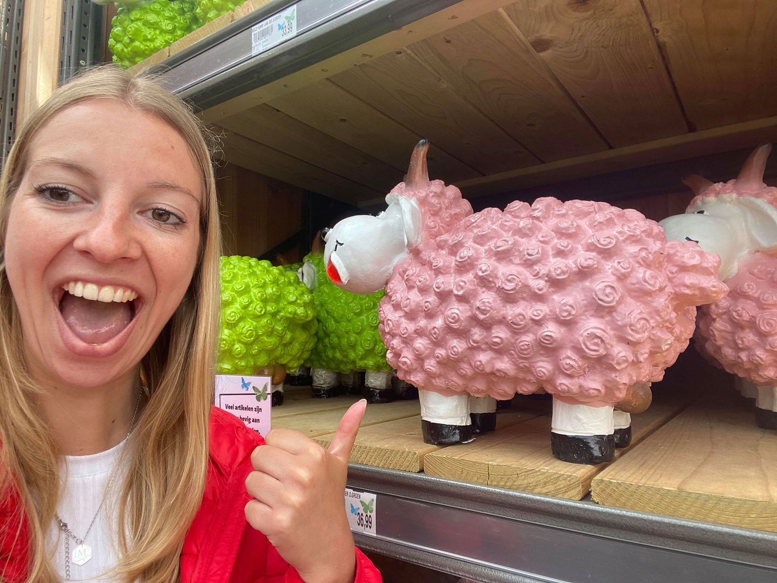 Even lekker rond kijken en ik zag dit roze schaap. Super grappig.