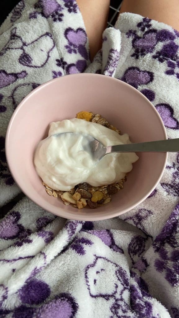 Dinsdag (28 april). De ochtend beginnen met een lekker bakkie Skyr. Daarna gezellig koffie drinken met Thijs.