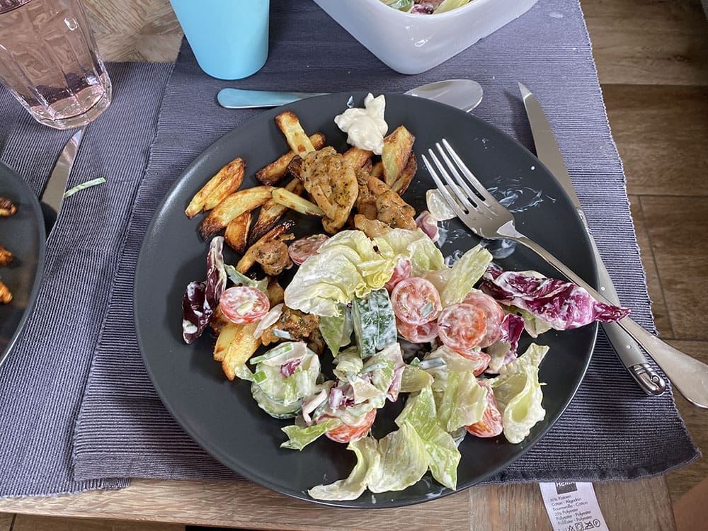 Tussendoor alle kids verzamelen voor een patatje. Ging goed en het was lekker.