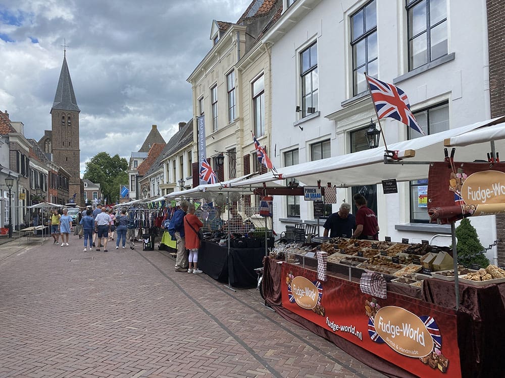 Vrijdag (15 juli) . Na een ochtend werken, ging ik met moeders de ’s middag naar Doesburg. Er is daar het hele weekend een braderie/feest: Verrassend Doesburg. We wilden eens kijken wat dat was en of wij er met onze Heppy kraam volgend jaar misschien kunnen staan.