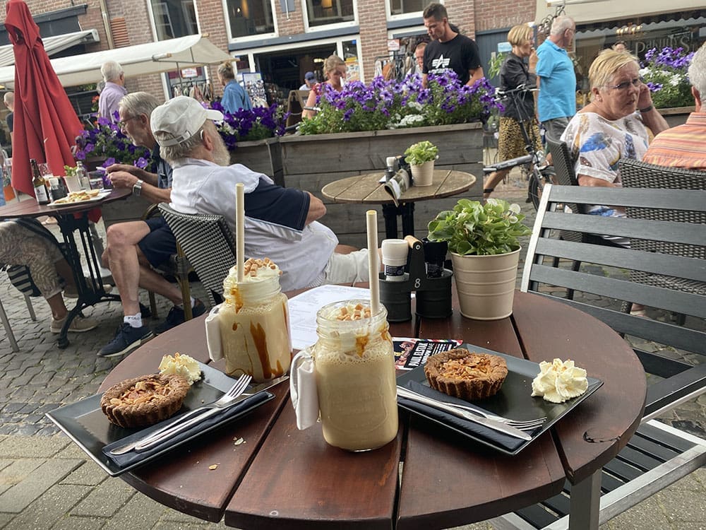 Op een terrasje lekker wat drinken. En ook alvast wat vakantie inkopen doen.