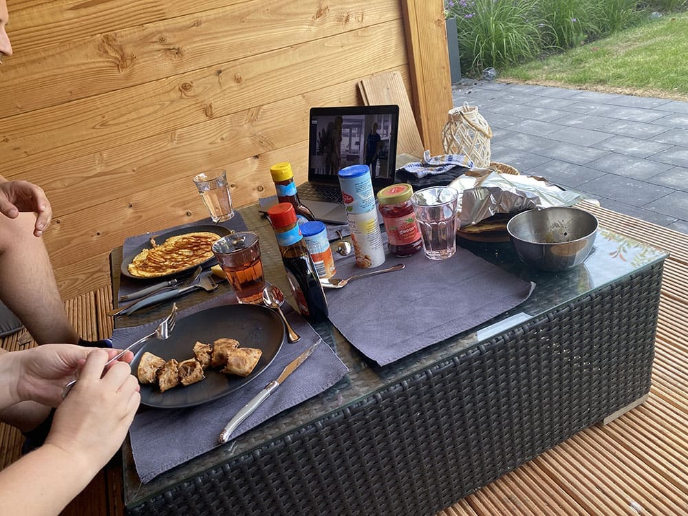 Thuis nog even sporten en daarna eten maken.