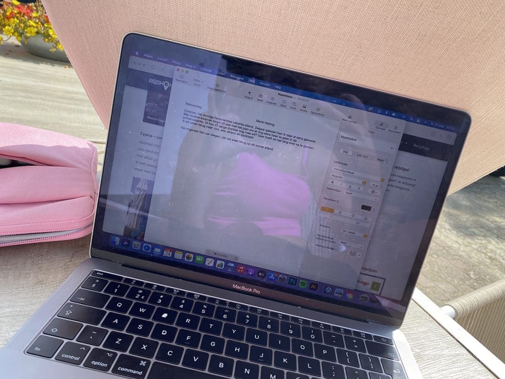 Daar begon ik met mijn reisverslag schrijven voor de journalistiek cursus. Lekker buiten: krijg je een beetje het ‘Curaçao gevoel’.