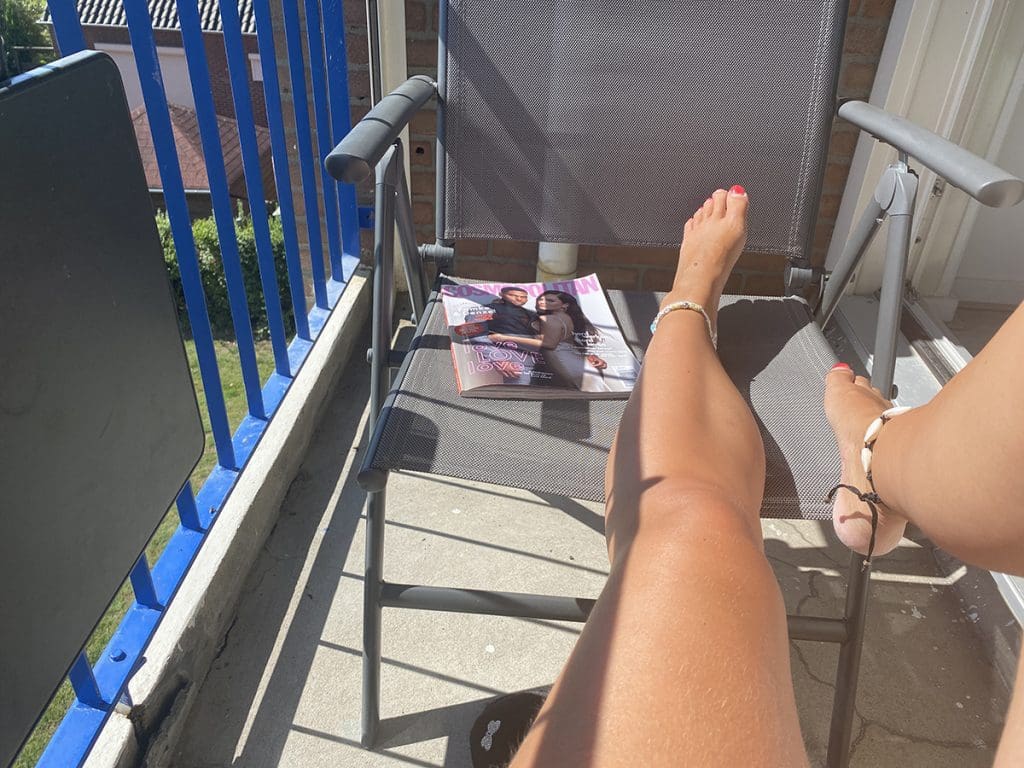 Nog even van de zon genieten en een tijdschrift lezen.
