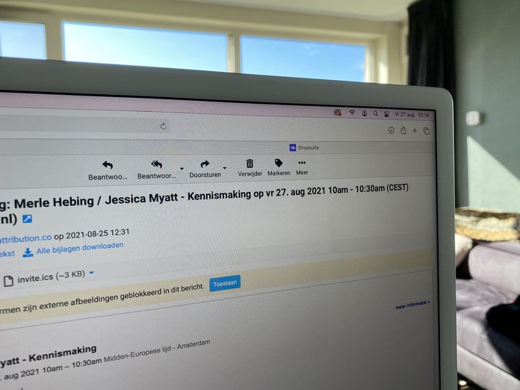 Vrijdag (27 augustus). Ik had een online bel afspraak met een nieuwe werkneemster bij Shopsuite. Het was een leuk gesprek.