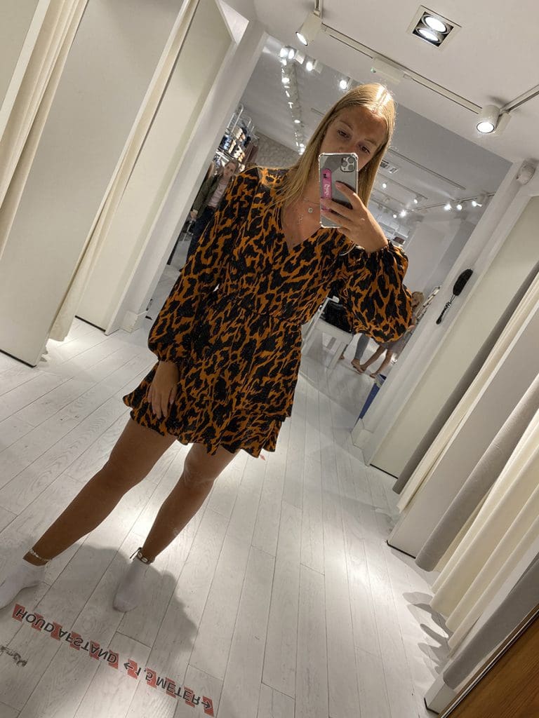 De missie was: een jurkje scoren voor de bruiloft. Ik heb een jurkje van NA-KD achter de hand maar deze is wat kort. Ik paste verschillende jurkjes aan. Mijn oog viel in dit pashokje op het gave krukje. Ik wil deze ook!