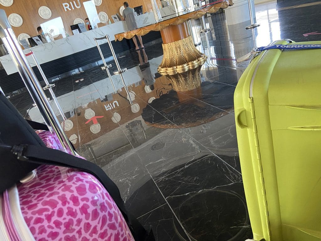 Toen we geland waren, werden we met een busje naar het hotel gebracht. Hier moesten we heel even wachten totdat de kamer klaar was.
