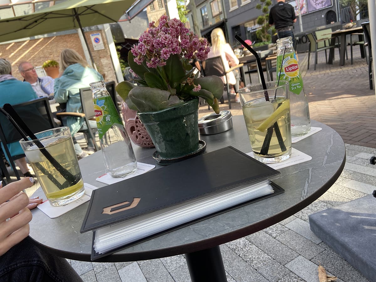 Onze gesprekken waren nog niet klaar: dus gaan we verder op een terrasje met wat drinken. En daar zaten we nog wel een tijdje….