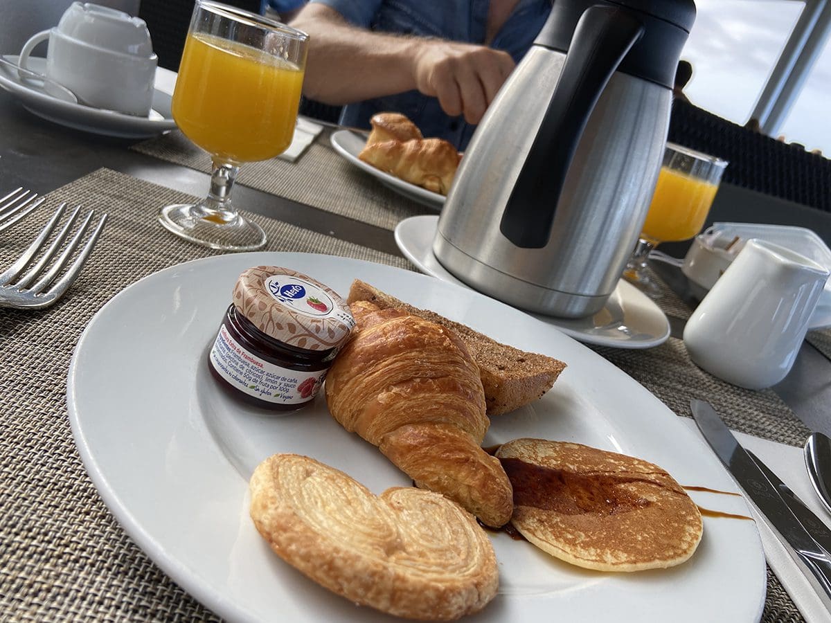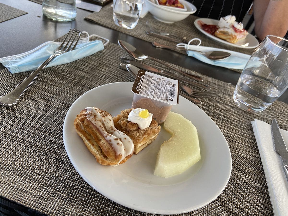 Maandag (27 juli). Het ontbijt is net zo lekker als het avondeten. Mmmh, zo veel keuze. Je eet je voor de hele dag al vol joh, haha.