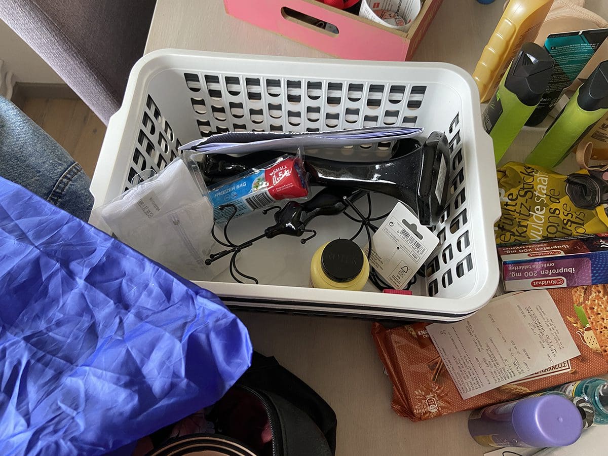 Alles past er maar net in, haha. En dan moet er nog een toilettasje bij….