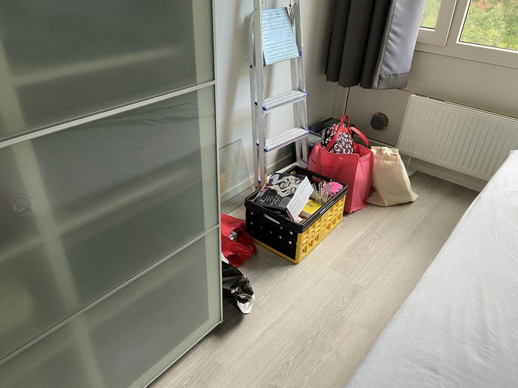 De andere spullen staan vast klaar in de kamer, maar de kast moet nog komen. Komt allemaal nog….