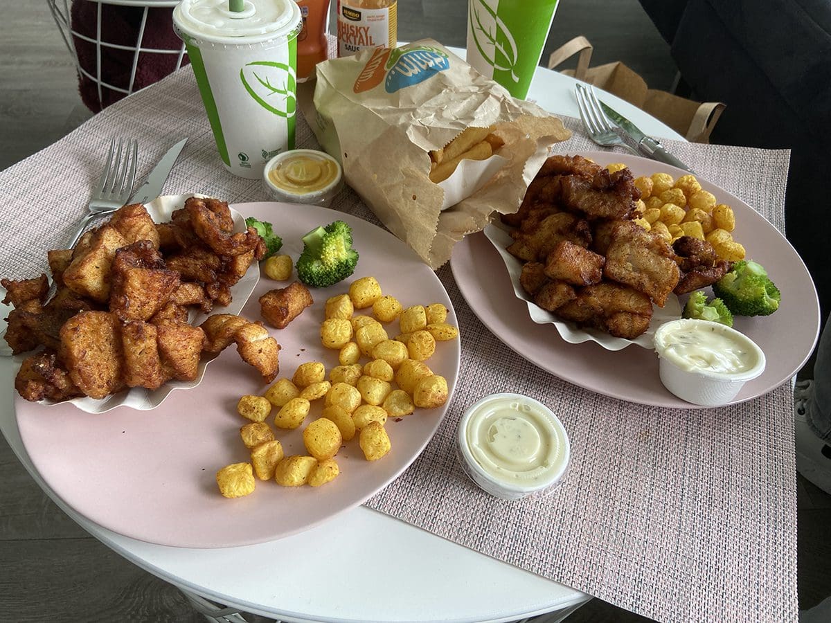 Na al dat gesjouw hadden we wel wat lekkers verdient: mama en ik haalden lekker kibbeling.