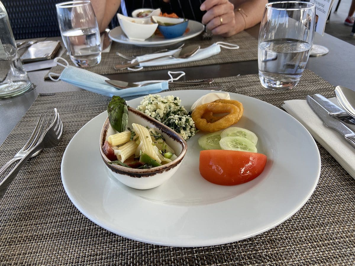 We hebben ons omgekleed en hebben maar eens een rondje in het hotel en buiten gelopen. Wat is het er mooi! Alleen binnen in het hotel moet je een mondkapje op. Buiten hoeft het gelukkig niet. En met eten mag je kapje natuurlijk ook af ;).