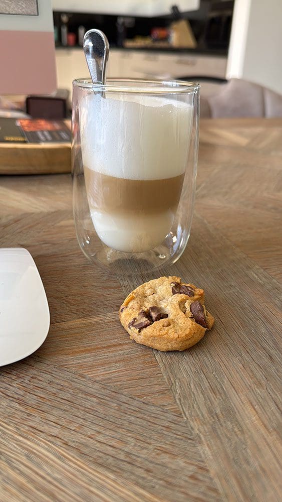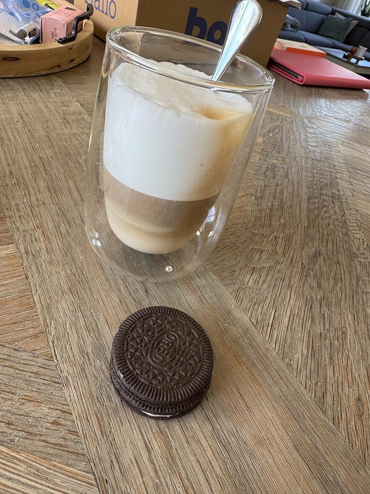 Donderdag (20 maart). Koffie met en Oreo koekje. En wat bezig achter de computer.
