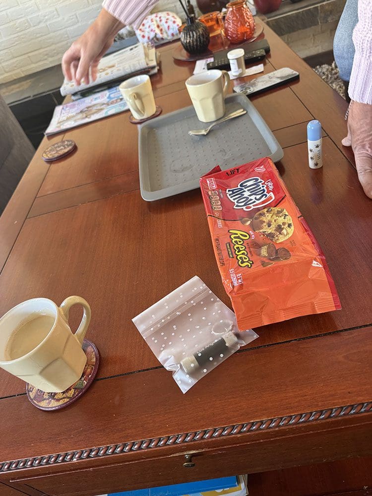 Dinsdag (18 maart). Op de koffie bij oma. Mijn souvenir uit LA geven en lekker koekjes eten.