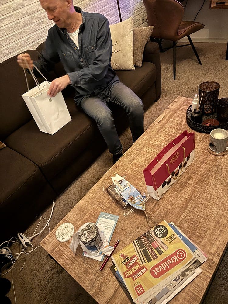 Na het eten zijn we naar mijn ouders gegaan. Souveniertjes brengen en de iPad voor papa die in Amerika goedkoper was. Hij is er helemaal blij mee.