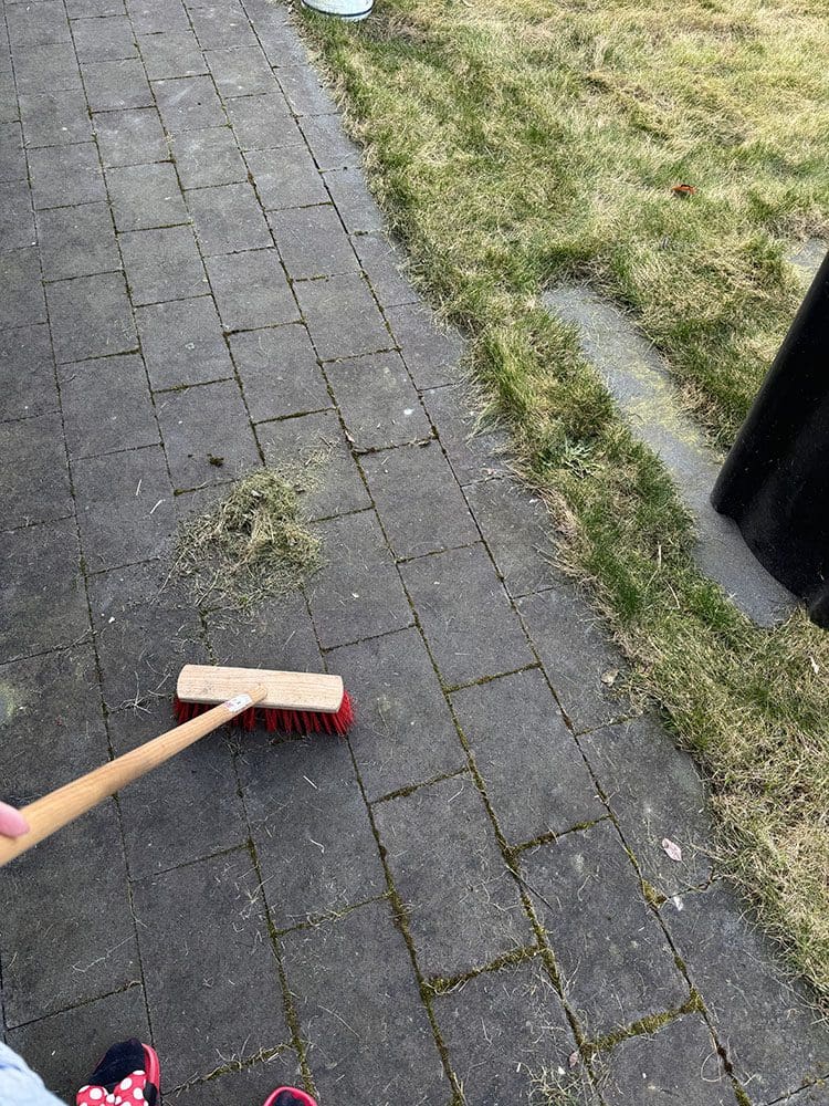 En het leek wel alsof ik een zonnesteek had. Ik ben de tuintegels gaan schoonmaken.