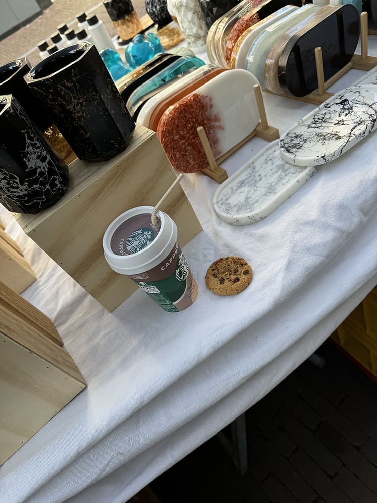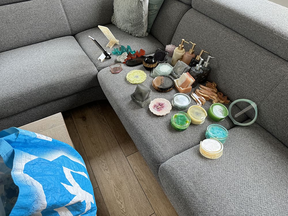 Ik ging bij mama langs om wat epoxy op te halen. Ze is bezig met vaasjes van epoxy, super leuk!