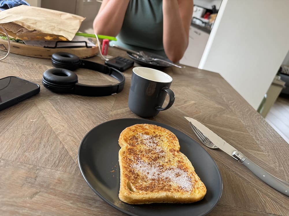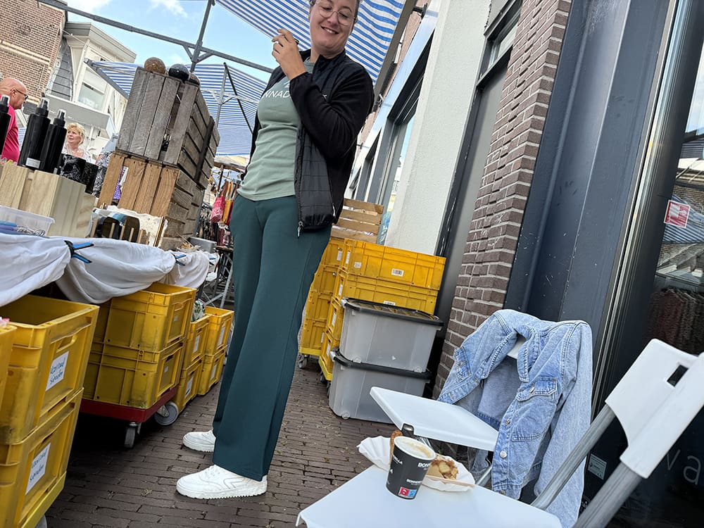 Zaterdag (24 augustus). Ik was de ochtend bezig met de bedden en er kwam een klant wat aan huis kopen. Daarna kwam Jolynn en hebben we ons klaargemaakt. Thijs had lekkere wentelteefjes voor ons gemaakt.