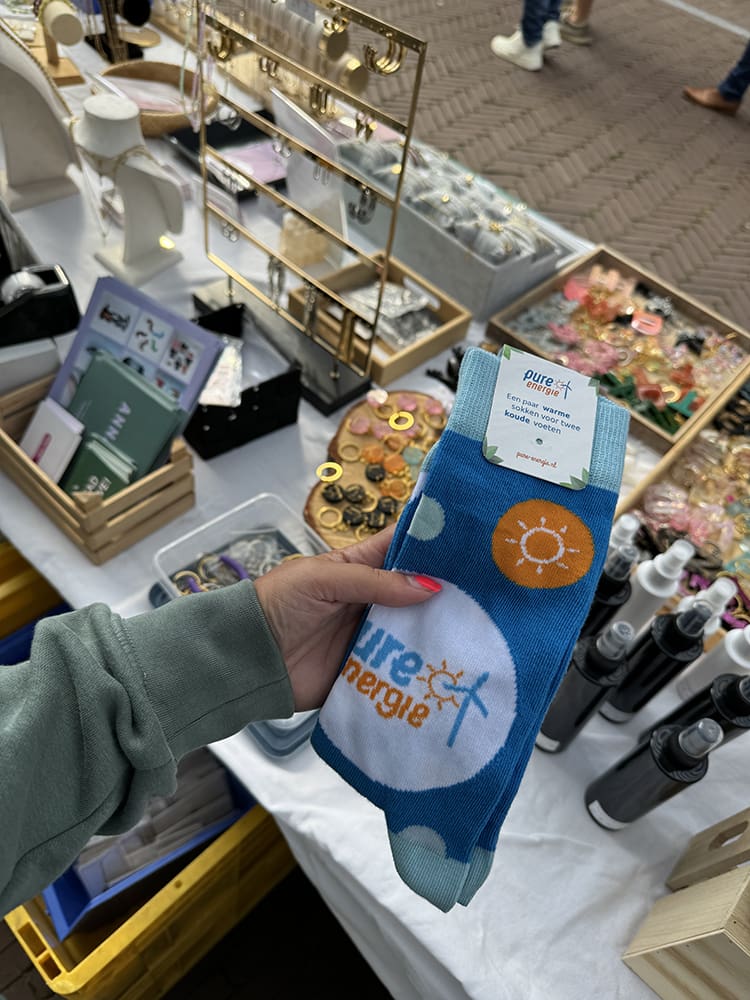 Er kwamen jongeren voorbij die een soort ruilspel deden. Ik heb een item voor deze echte Twentse sokken geruild, haha.