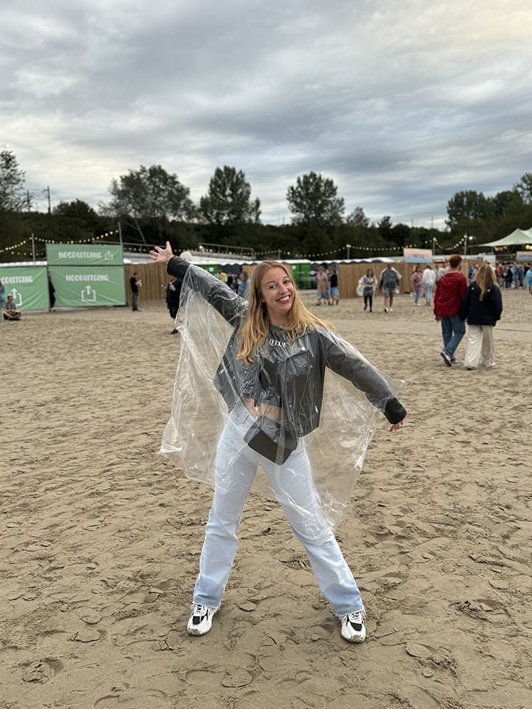 Voor de dag erna was geen mooi weer voorspeld. Ik dacht: regenponcho’s zijn dan best handig op een festival. En ja hoor.. loop ik in de stad… weer regen. Maar ik heb ze gehaald.