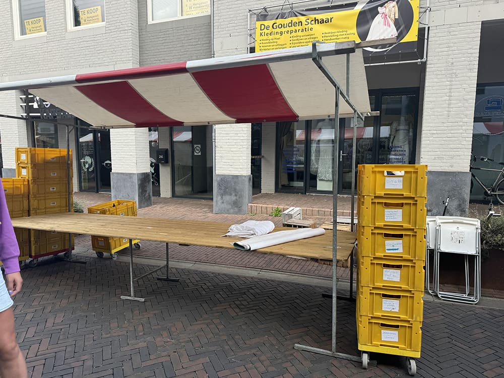 Jolynn was blijven slapen en ging mee. Super fijn dat we met drie konden opbouwen. Ging lekker vlot.