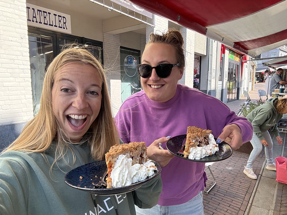 Tijd voor wat lekkers. Dit was een groot stuk appeltaart joh. Dit kon ik niet in een keer op.