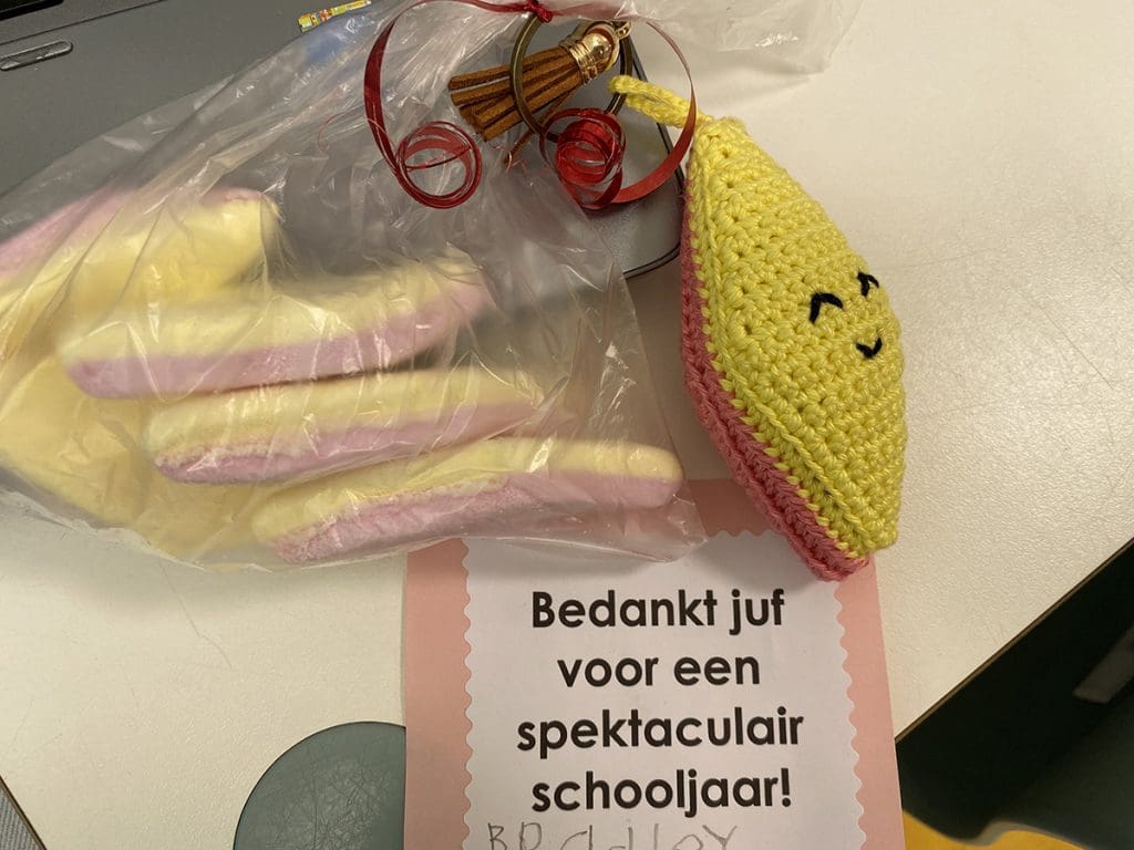In de middag heb ik met mijn groep kleuters een filmpje gekeken en daarna nog even gespeeld. Zij waren erg moe en ik ook. Van één van de kinderen kreeg ik alvast een bedankje. Super lief!